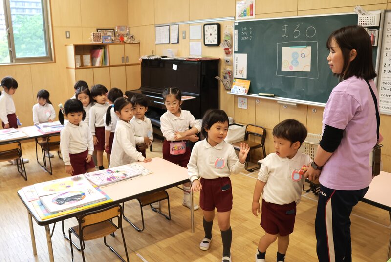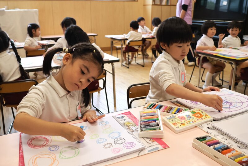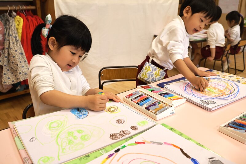 さて、こちらは年中の「ゆり組」さん。お子さまたちは、クレヨンを手にしてお絵かきをしていました。特にテーマを定めない「自由画」かと思いましたが、担任の先生に尋ねたところ、立派なテーマがありました。そのテーマとは、いったい何かおわかりになりますか?