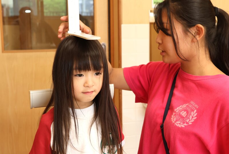 計測するのは、身長と体重。これからの成長が楽しみです。