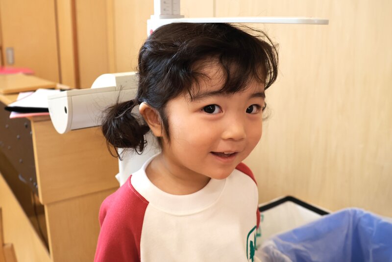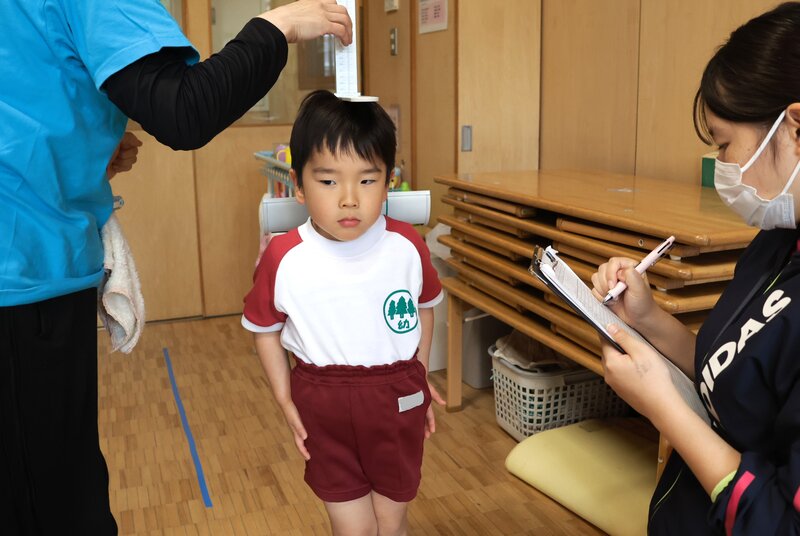 「くま組」さんと「うさぎ組」さんは、身体測定をしていました。はじめての体験で少し緊張気味でしょうか。